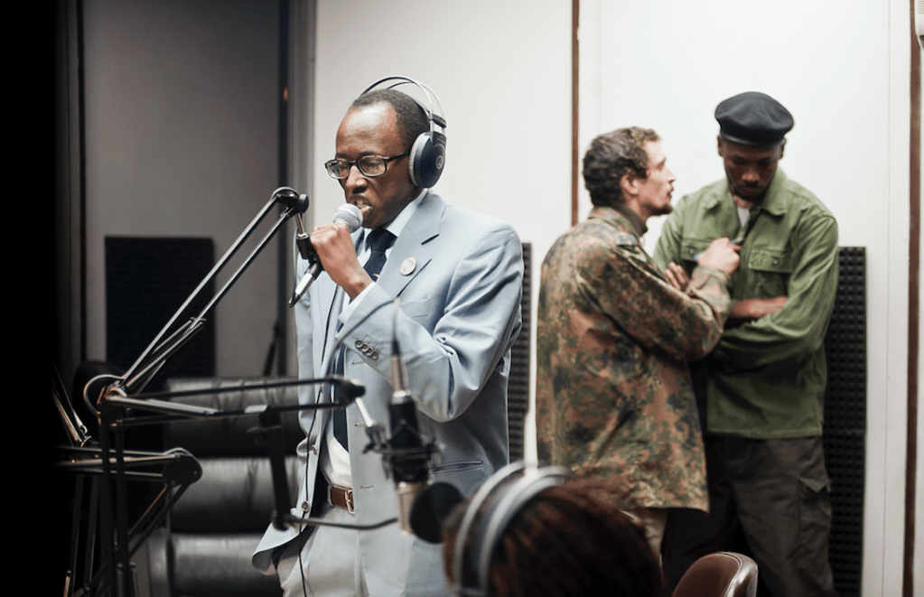 Orchestrating the killing from an office building in the capital, Kigali, was RTLM (Radio Télévision Libre des Mille Collines) a pro-Hutu radio station which denounced Tutsis as ‘cockroaches’ and broadcast details of their whereabouts so vigilantes could find and kill them. Rau’s play sets the scene with filmed testimony from four genoicide survivors, whose accounts are jaw-droppingly terrible. Then we are in the studio, during an hour-long show with three hosts and their MC/link man, which plays out in real time. We hear the relentless pushing of hatred, the repetition of racial slurs, the historical propaganda and the lies. It is like verbatim theatre, replaying real life events in all its ordinariness and horror. It is relentless and chilling – and extraordinary. It is impossible to turn away for a moment.
