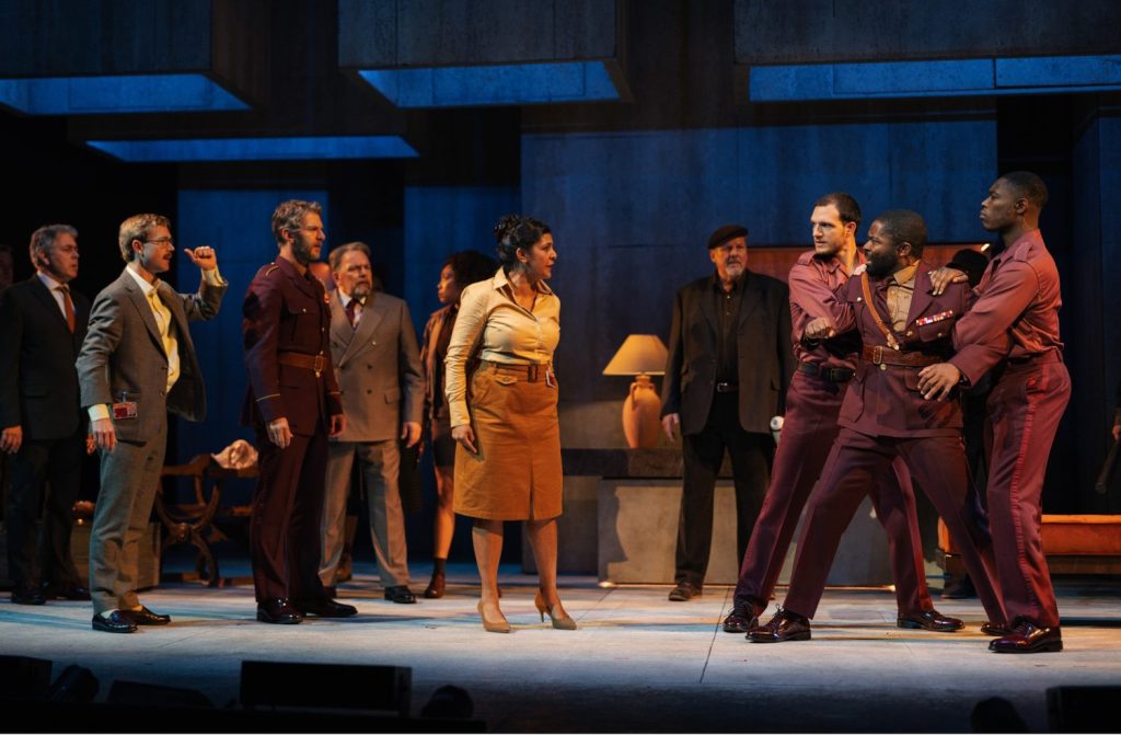 Yaël Farber’s production of The Winter’s Tale is played against the backdrop of a giant, three-dimensional moon. It glows pale white or blood red to signify the contrasting locations in the play: Sicily and Bohemia. Soutra Gilmour’s designs, both set and costumes support an interpretation which has pace and coherence, which can easily vanish with the complete shift in setting and characters that occurs between Act III and Act IV. The early scenes of jealousy, as Leontes pulls apart the lives of those around him, are staged in an almost noir context, with a barefoot king and queen in loose grey clothing. The intensity is completely gripping, in some of Shakespeare’s most driven and desparate scenes. Bertie Carvel’s Leontes is rangy and wired, his paranoia entirely convincing. John Light’s Polixenes, the object of his irrational hatred, is outwardly jovial but wary just below the surface. Madeleine Appiah’s Hermione is full of goodwill, which makes her destruction all the more unbearable. Her trial scene, where she defends herself with patches on her dress from lactation, having just given birth, is very upsetting.